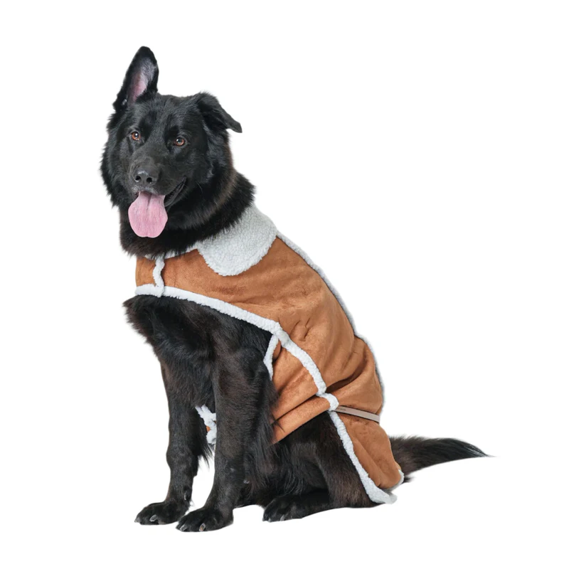 The Premium Suede Jacket with Teddy Fur offers luxury warmth and comfort for your pet. Crafted with a soft suede outer layer and plush teddy fur lining, this jacket provides excellent insulation while maintaining a stylish look. Designed for a comfortable fit and easy movement, it’s perfect for cold-weather walks and special outings.